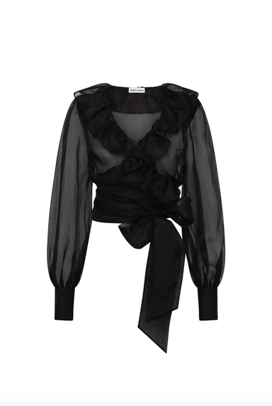 Model is 5'9" and wearing a size 2 Runs true to size Wrap style top Slip shirt not included Size Chart