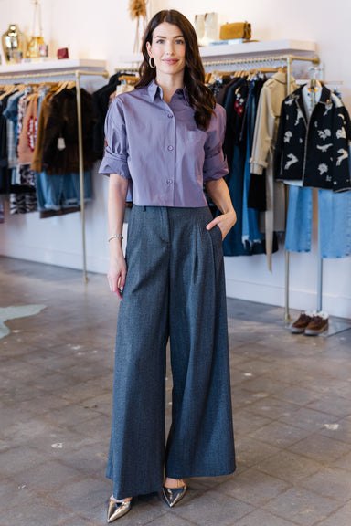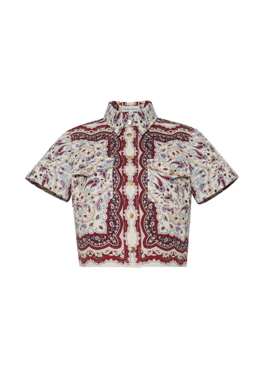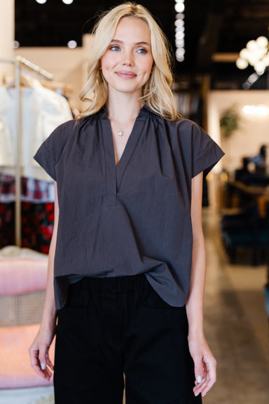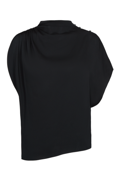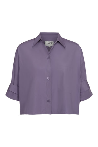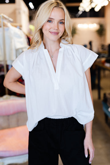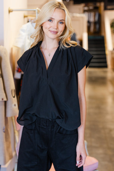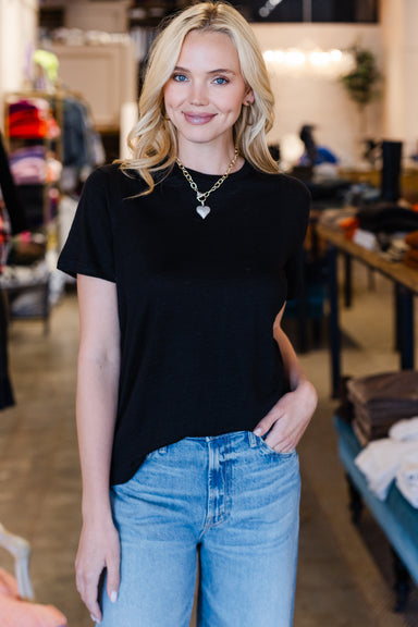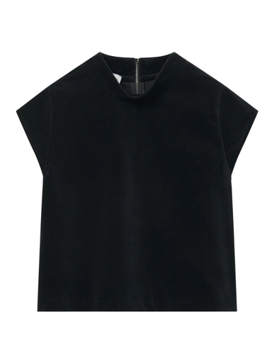 • Cropped crewneck top• Short Sleeve• Back neck keyhole with button