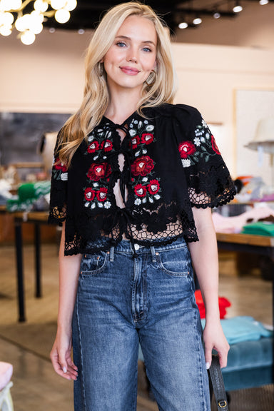 Rosaline Embroidery Top - Black