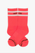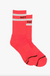 Watch your step. Classic tube socks with a bold message from MOTHER. Shown here in neon pink with brown lettering and cream details.