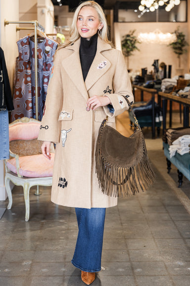 Iconic shape and designHand embroidered silk thread and felt appliquéStainless steel frameUnique printed lining for each piece (could be different...