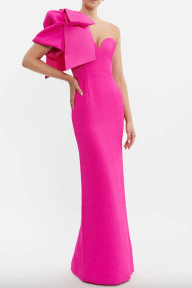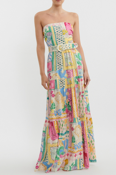 Premium appliqué maxi dress Exclusive LEO LIN Peony Print in Saffron Floral appliqué detailing with hand sewn beading embellishments Strapless nec...
