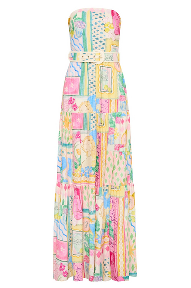 100% BCI Certified Cotton OEKO-TEX®️Standard 100 Certified Orozco Stripe Dusty Tomato Maxi dress Strapless Fitted bodice with gathered fabric deta...
