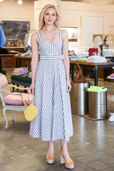 Tie Shirt Dress - Blue Stripe