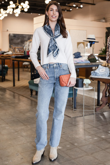 Model is 5'9" and wearing a size XS Relaxed fit 100% Cashmere Size Chart