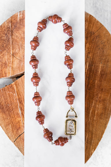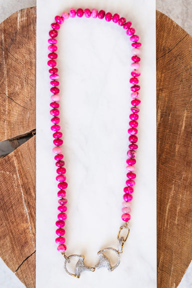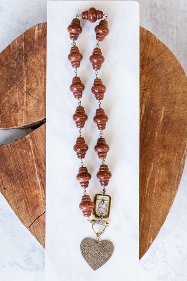 100 year old Czech cherry tomato beads featuring pave diamond horsebit clasp Measures approx. 20" long Pendant not included