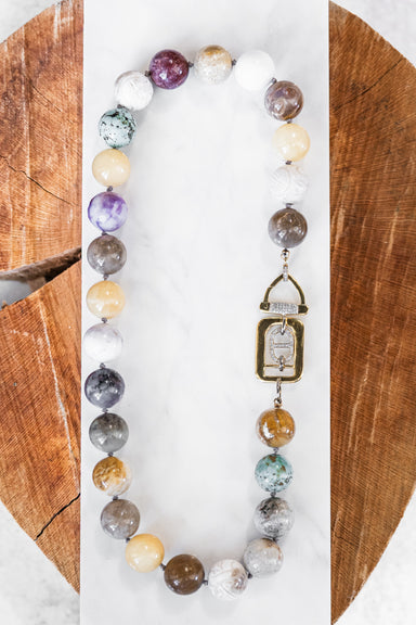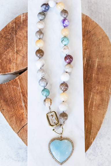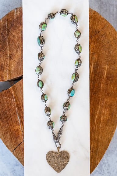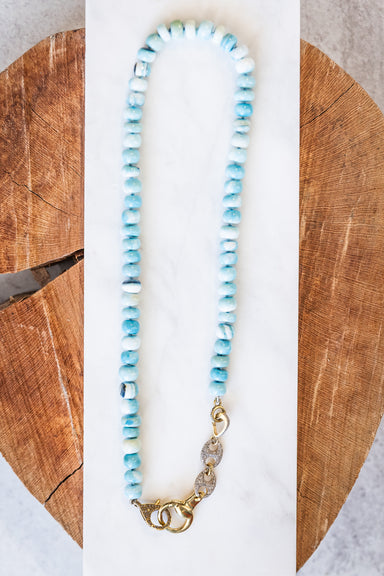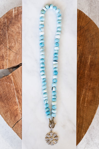 Amazonite beads featuring pave diamond horsebit pendant Measures approx. 19" long Pendant not included