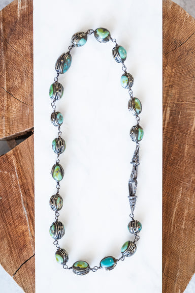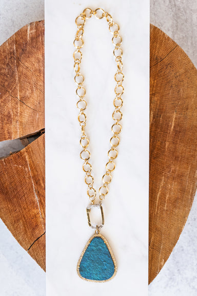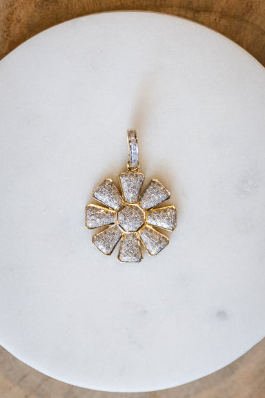 Turquoise flower and raw cut diamond center, featuring pave diamond stem Measures approx. 2.35" long by 1" wide Necklace not included