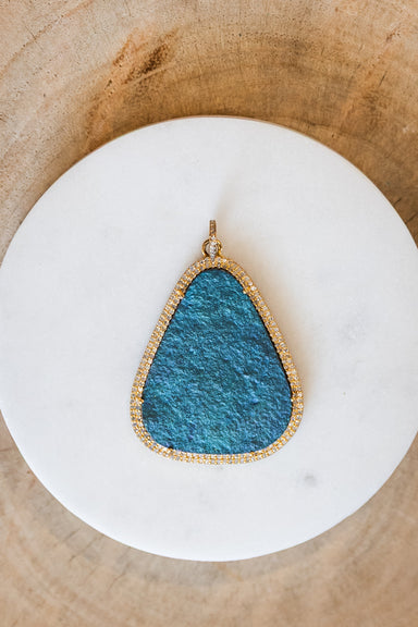 Turquoise triangles and pave diamond details Necklace not included Measures approx. 1.25" wide by 2" long