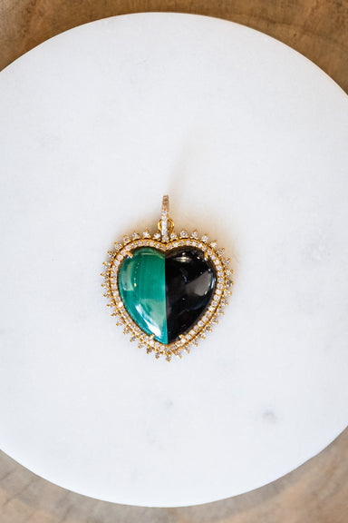 Pendant is made of fragmented antique Bulgarian porcelain plates and pave diamond details Measures approx. 1.5" long by 0.9" wide