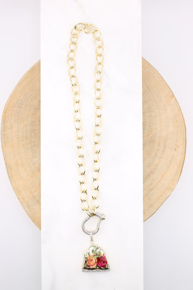 Pendant is made of fragmented antique Bulgarian porcelain plates and pave diamond details Measures approx. 1.45" long by 0.65" wide Necklace not ...