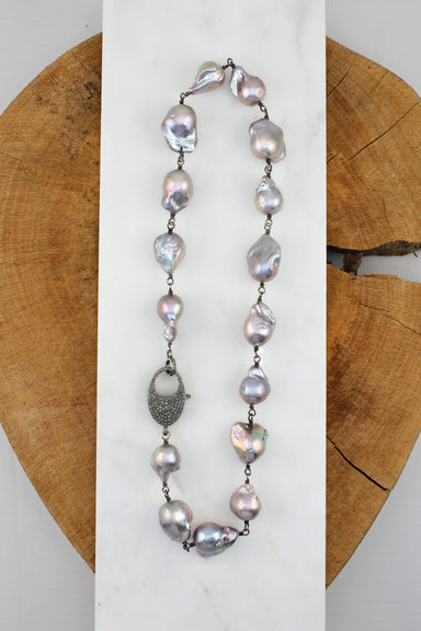 The Woods Fine Jewelry Baroque pearls with pave diamond clasp Measures approx. 18.5" long
