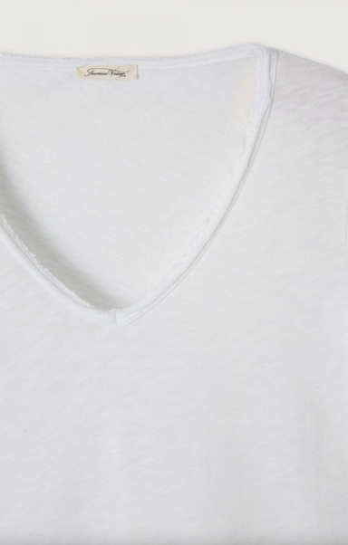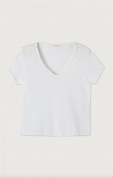 - Short sleeve white crew neck t-shirt- 100% cotton- Printed in Los Angeles- Relaxed women's fit with a feminine neckline