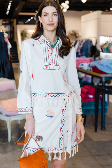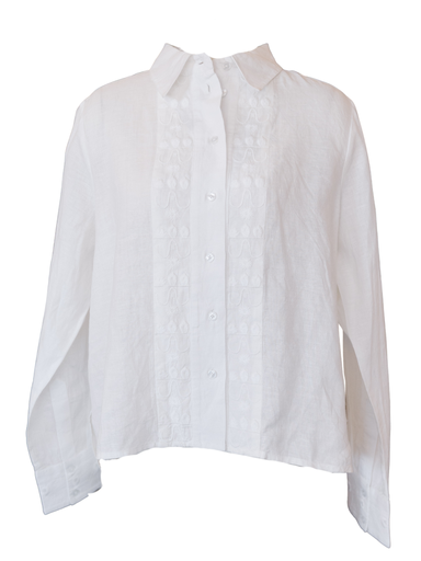 64% Viscose, 36% Rayon Juanita Swirl Indigo Button-up shirt Collar neckline Round tortoiseshell buttons Long flared sleeves Wide silhouette Band a...