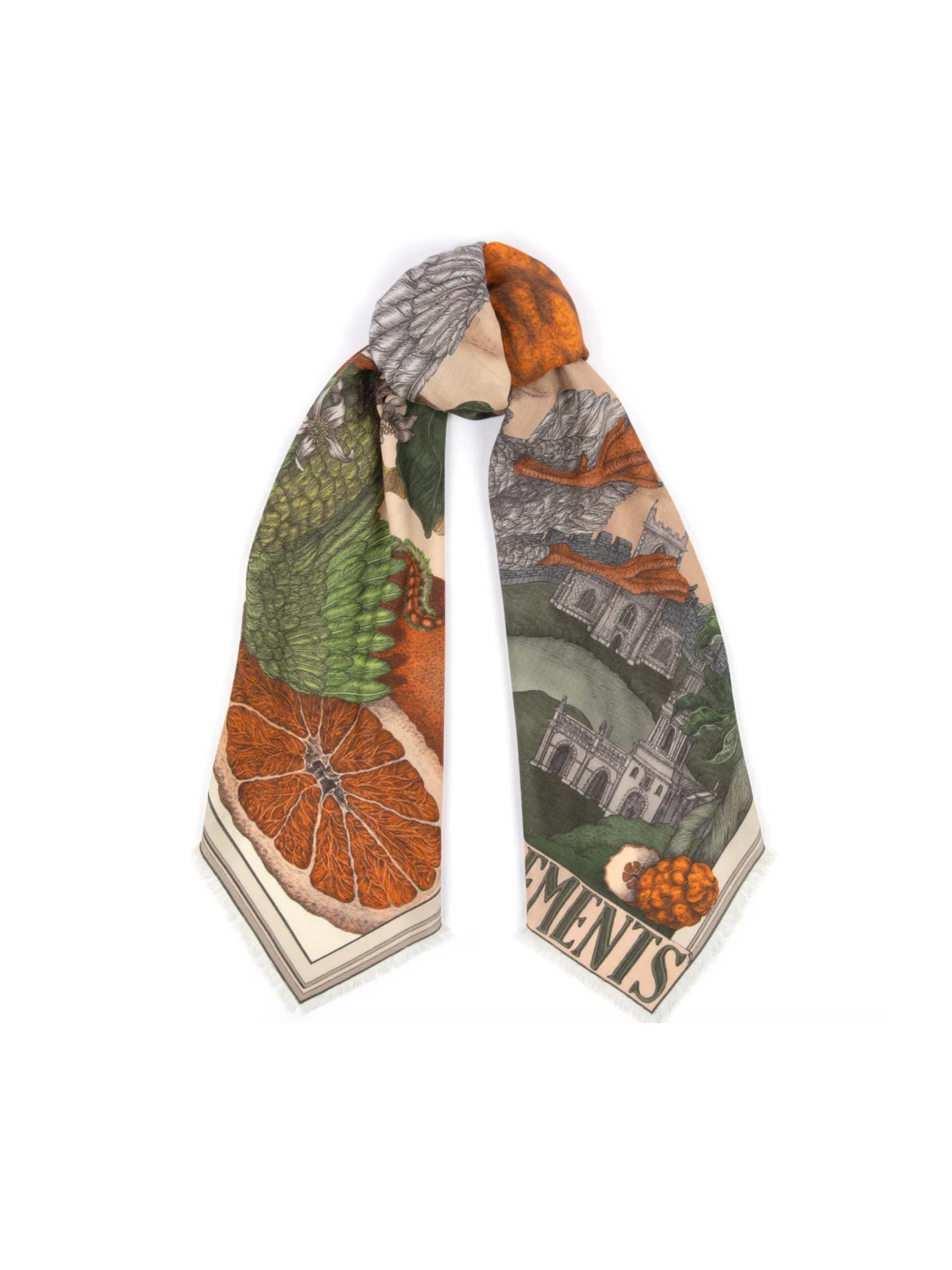 135x135 Large Wool/Silk Scarf-Oranges and Lemons-Citrine/Zest