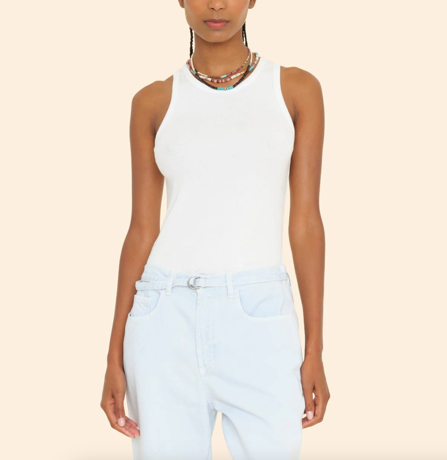 - This soft cut away tank has a raw shirttail hem and is a staple layering piece.