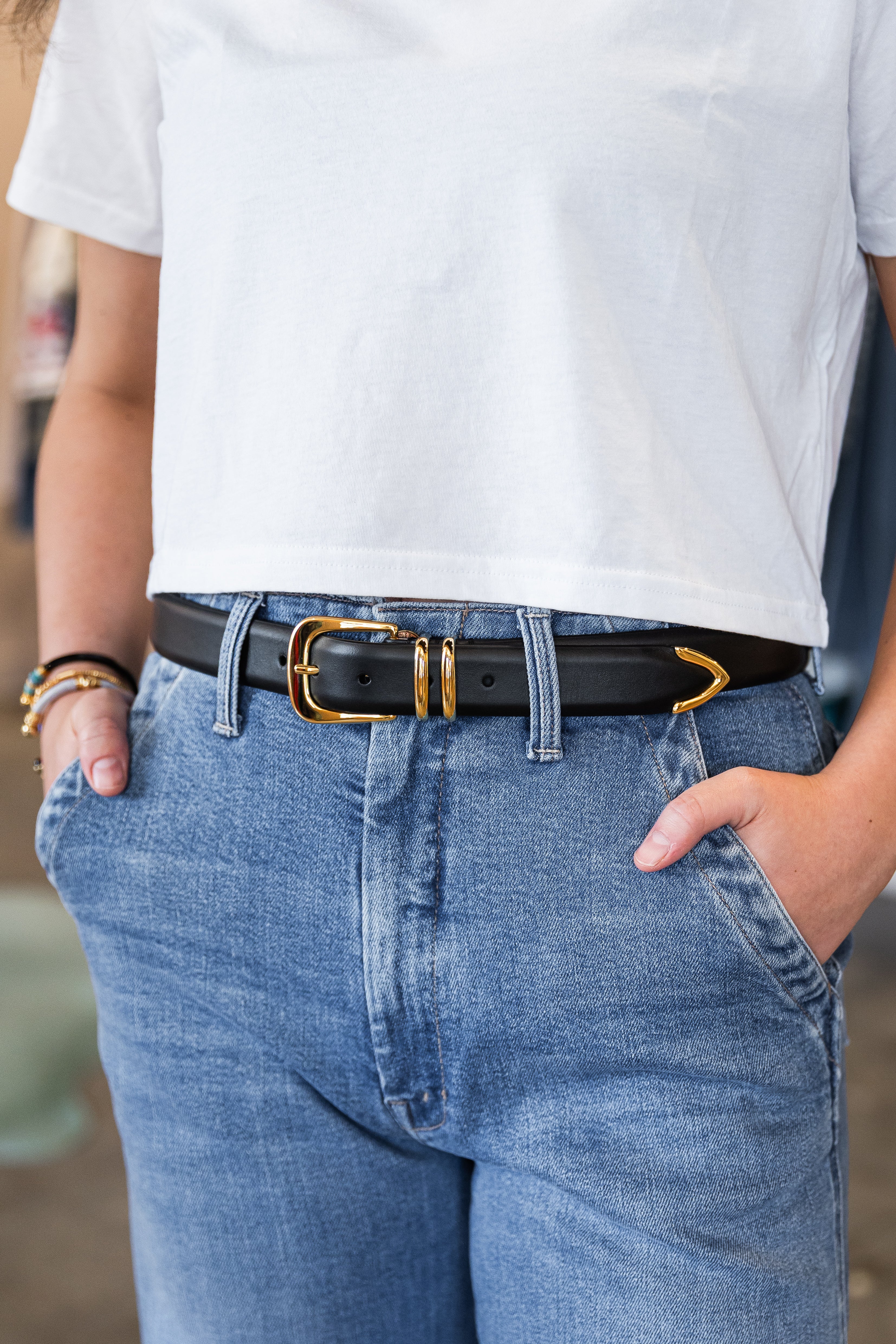 The buckle has a clean line and a shiny finish, suitable for even the most classic looks.